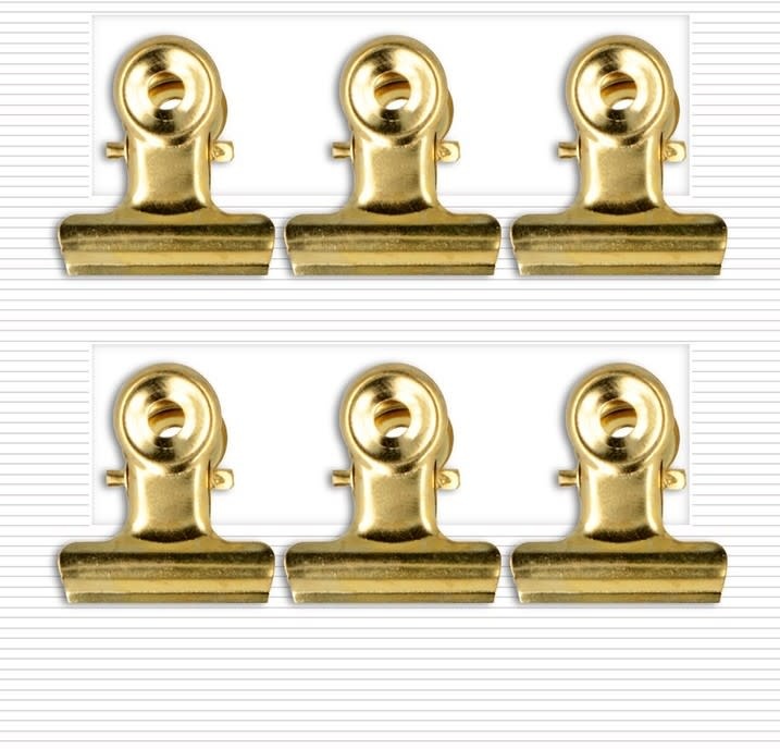 6 clips bulldog goud 2,1x2,3 cm