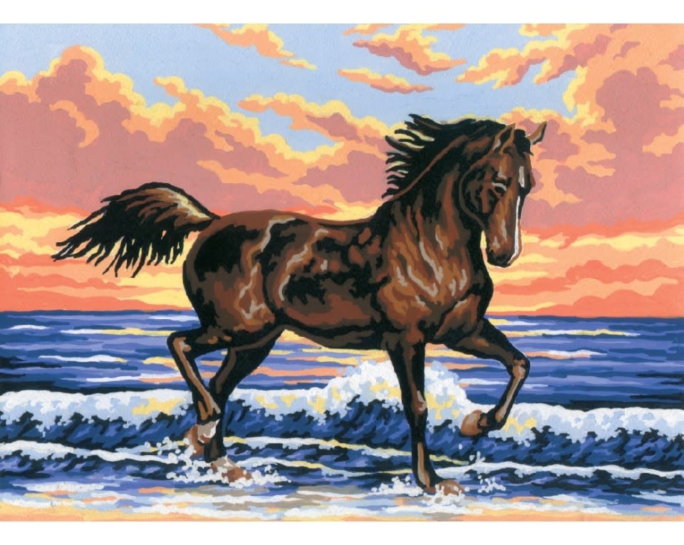 Collection d'art - Bedrukt stramien "Paard aan zee" 40x30cm