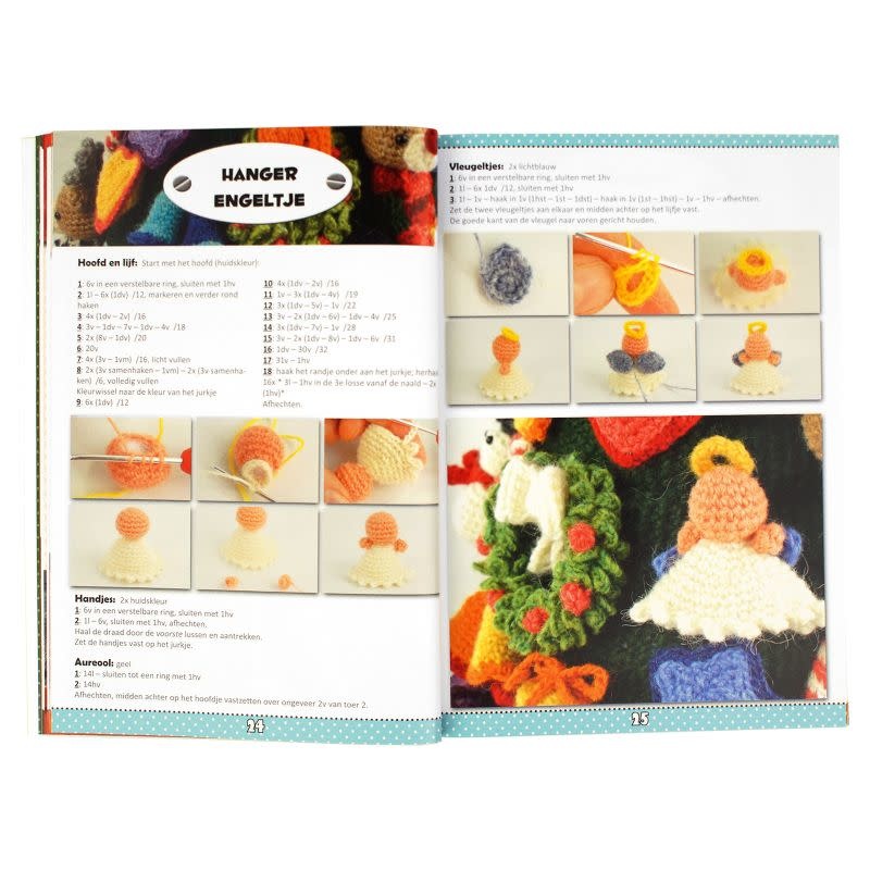 Daarnaast staan er 4 verschillende knuffels in dit boek; een Kerstman, Engel, Rendier en een Sneeuwpop.