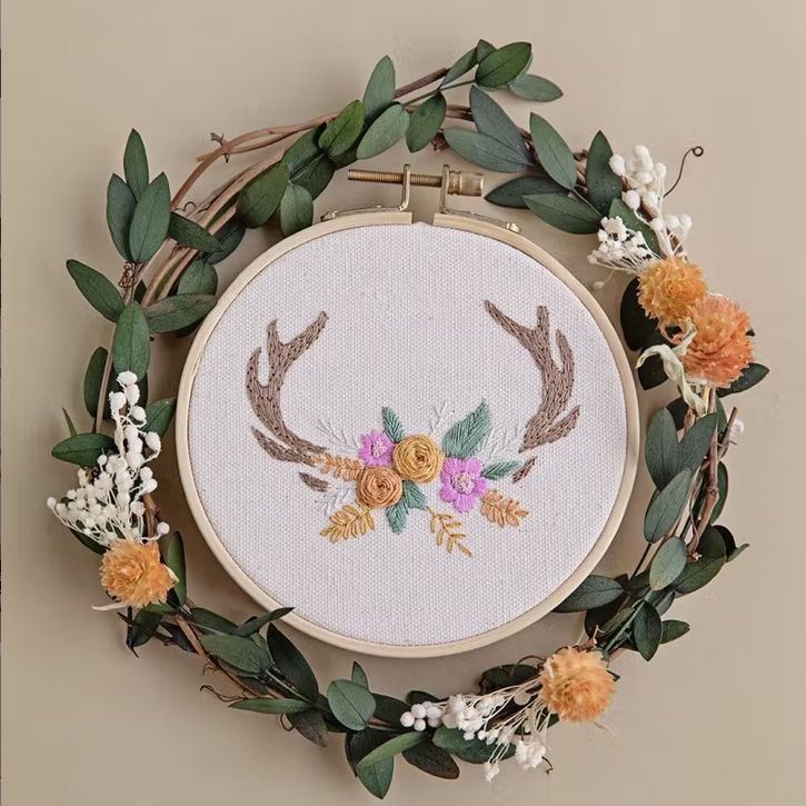 In het pakket is alles aanwezig voor de realisatie van dit poëtische borduurwerk. De te borduren patronen worden gedrukt op een oplosbaar zelfklevend vel dat u alleen maar op de drager van uw keuze hoeft te plakken: ofwel op de trommel en het canvas meegeleverd in de kit, ofwel rechtstreeks op een kledingstuk of een accessoire.