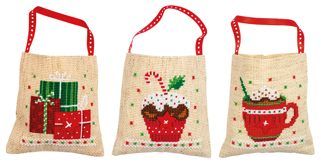 Cadeauzakje kit Kerstmotiefjes set van 3