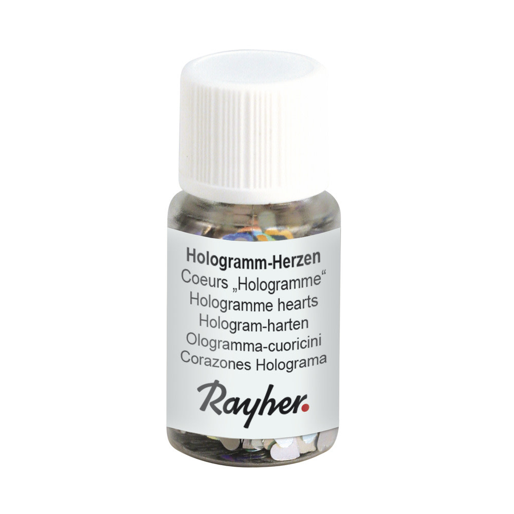 Coeurs "Hologramme", 3 mm, argent, flacon 10 ml, PET