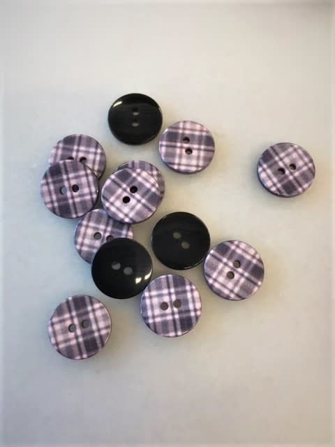 Knoop rond 12mm geruit L-20 roze/grijs per stuk