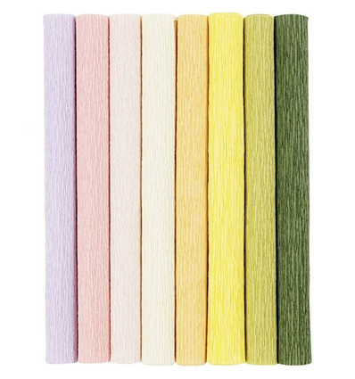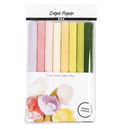Crêpepapier met een crêpe-verhouding van 180%, waardoor het perfect is voor het maken van papieren bloemen, omdat het gemakkelijk kan worden uitgerekt en gevormd zonder te breken. Het papier heeft een mooi gecrêpt oppervlak en verliest zijn vorm niet nadat het is gevormd en bewerkt.