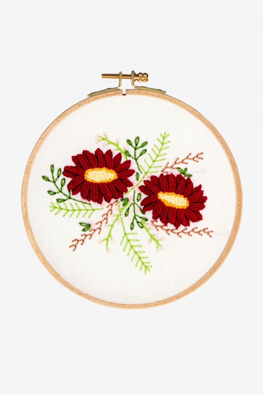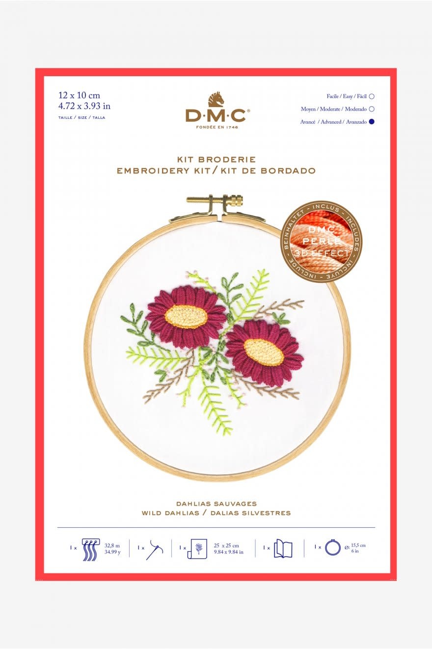 Kit en broderie traditionnelle. Motifs bouquet de fleurs Points utilisés: point de noeud, passé plat, point arrière, point lancé, point de chaînette, point de tige, point de bouclette...Niveau intermédiaire