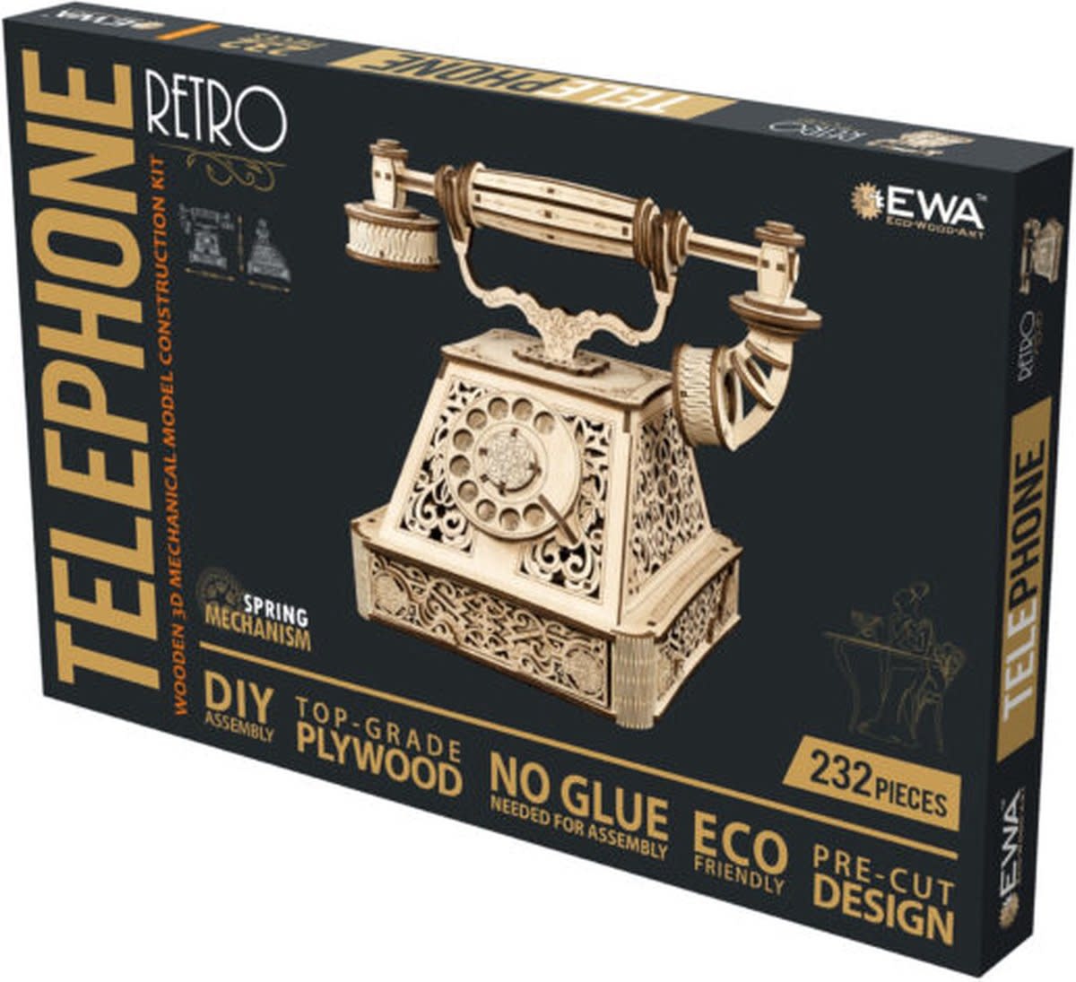 Eco Wood Art (EWA) 3D Houten Puzzel, Retro Telephone, 21,2x22x27,8cm