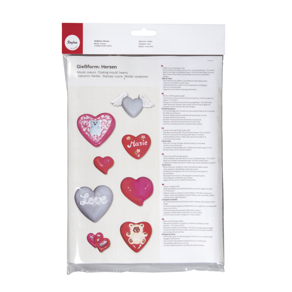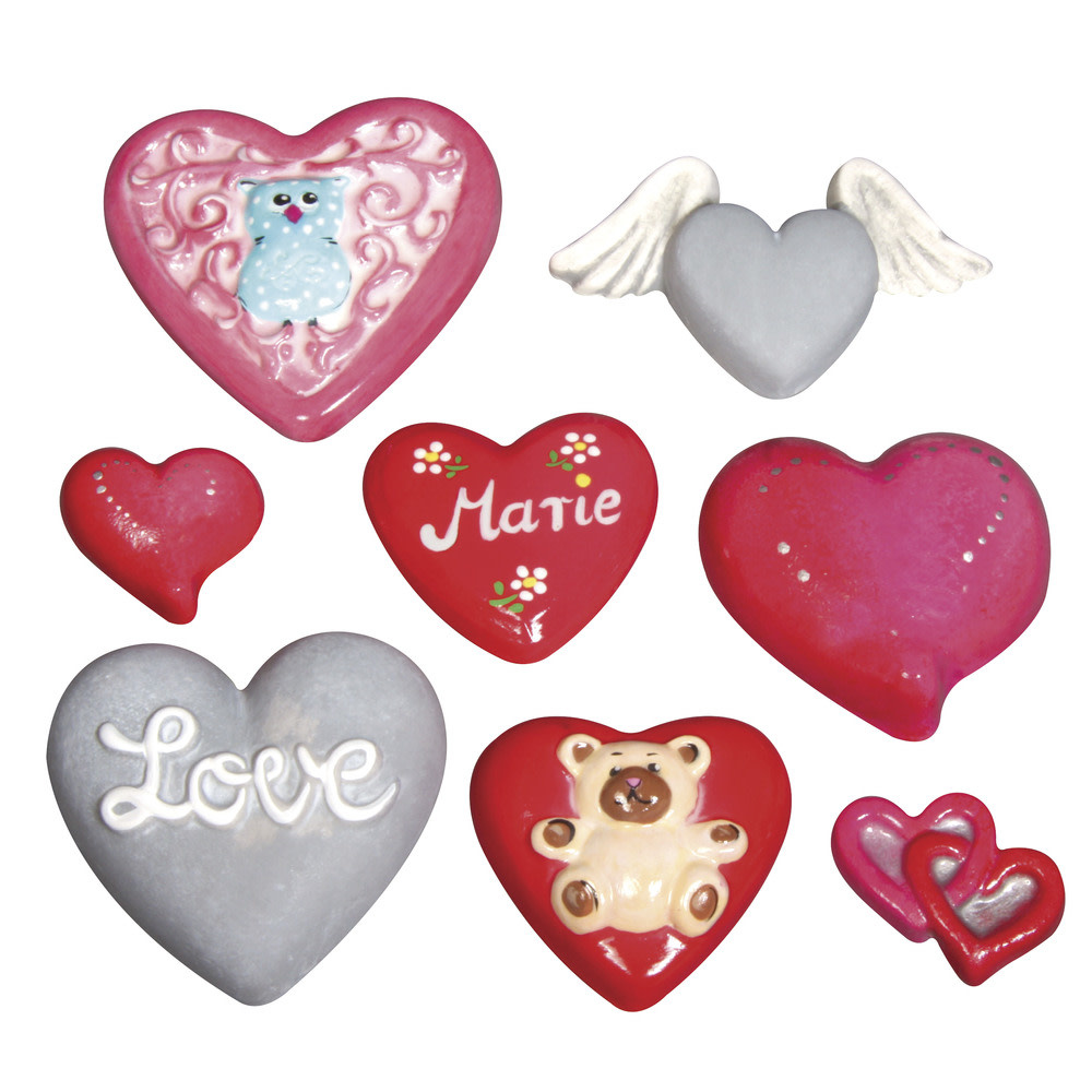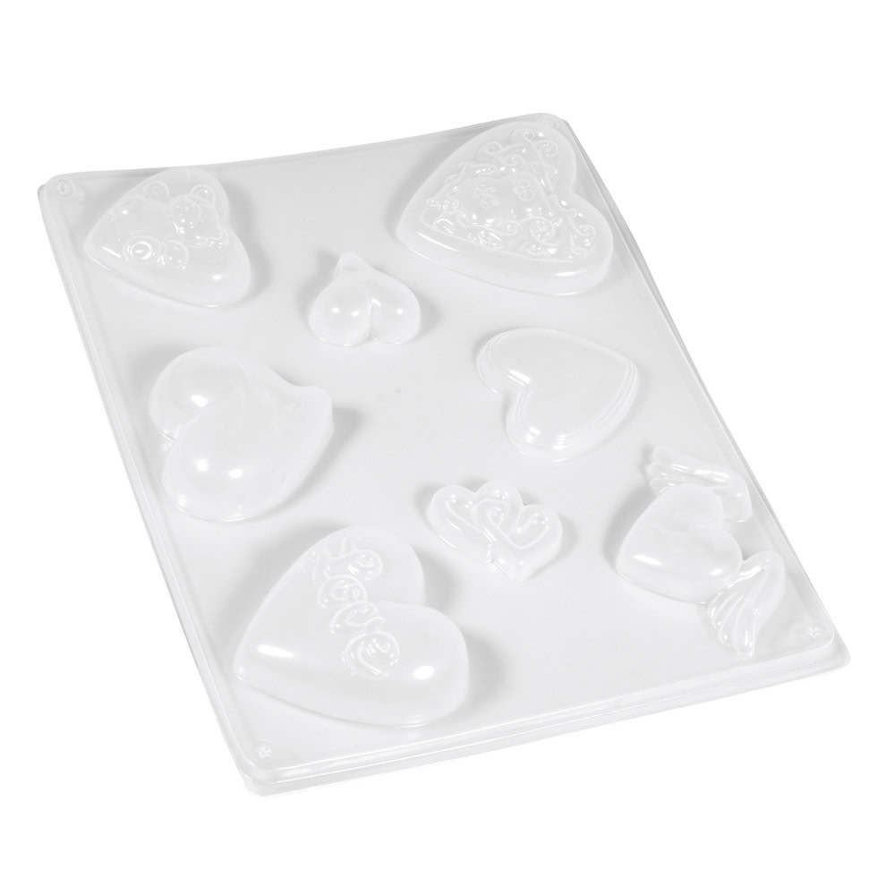 Gietvorm: harten, 8 motieven, 3, 5-7 cm, afmeting: 23, 2x18, 3 cm