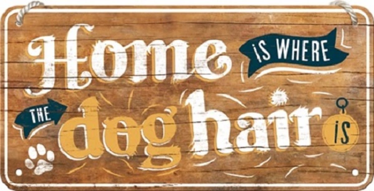 Home is where the dog hair is. Metalen wandbord 10 x 20 cm