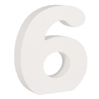 Houten nummer 6 , wit, 11cm, dikte 2 cm