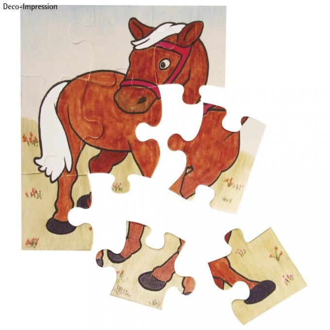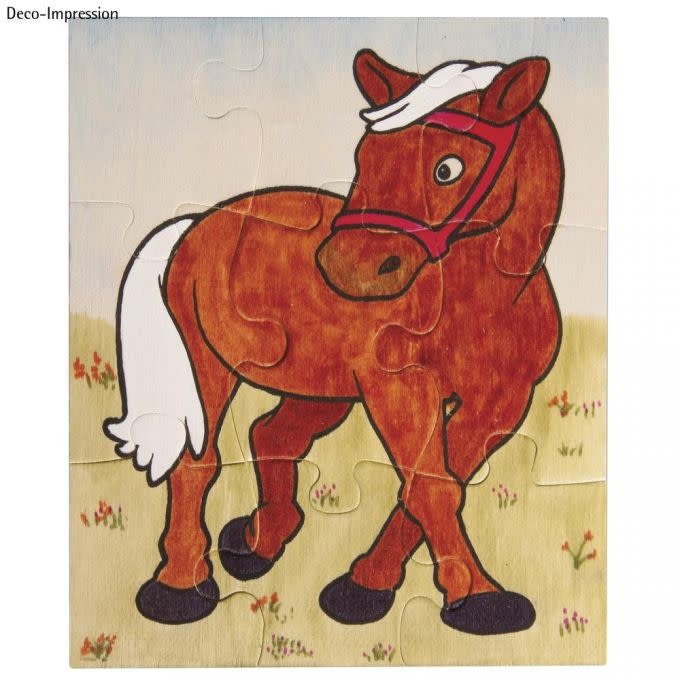 Houten puzzel PAARD, 17,6x14,7cm, om te kleuren