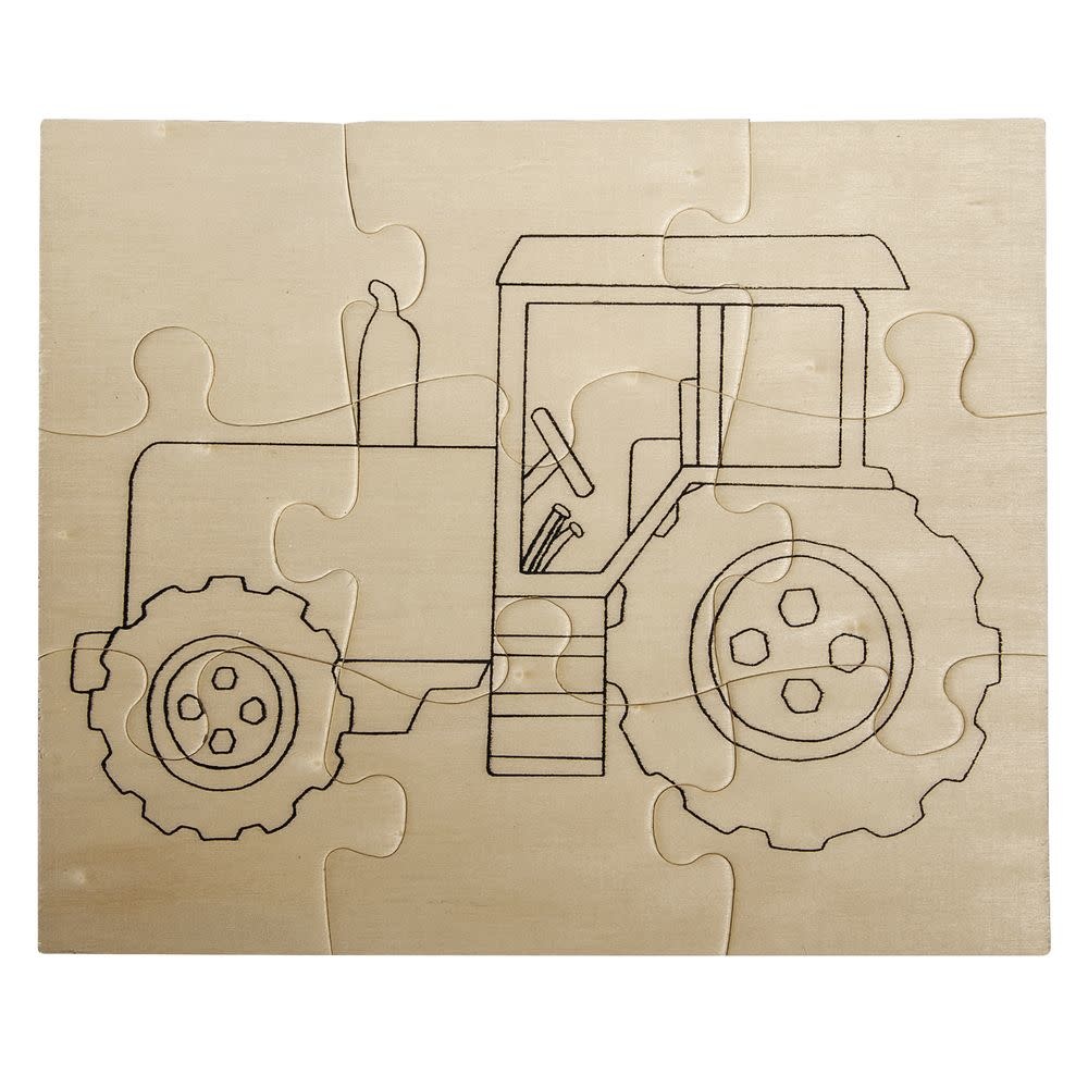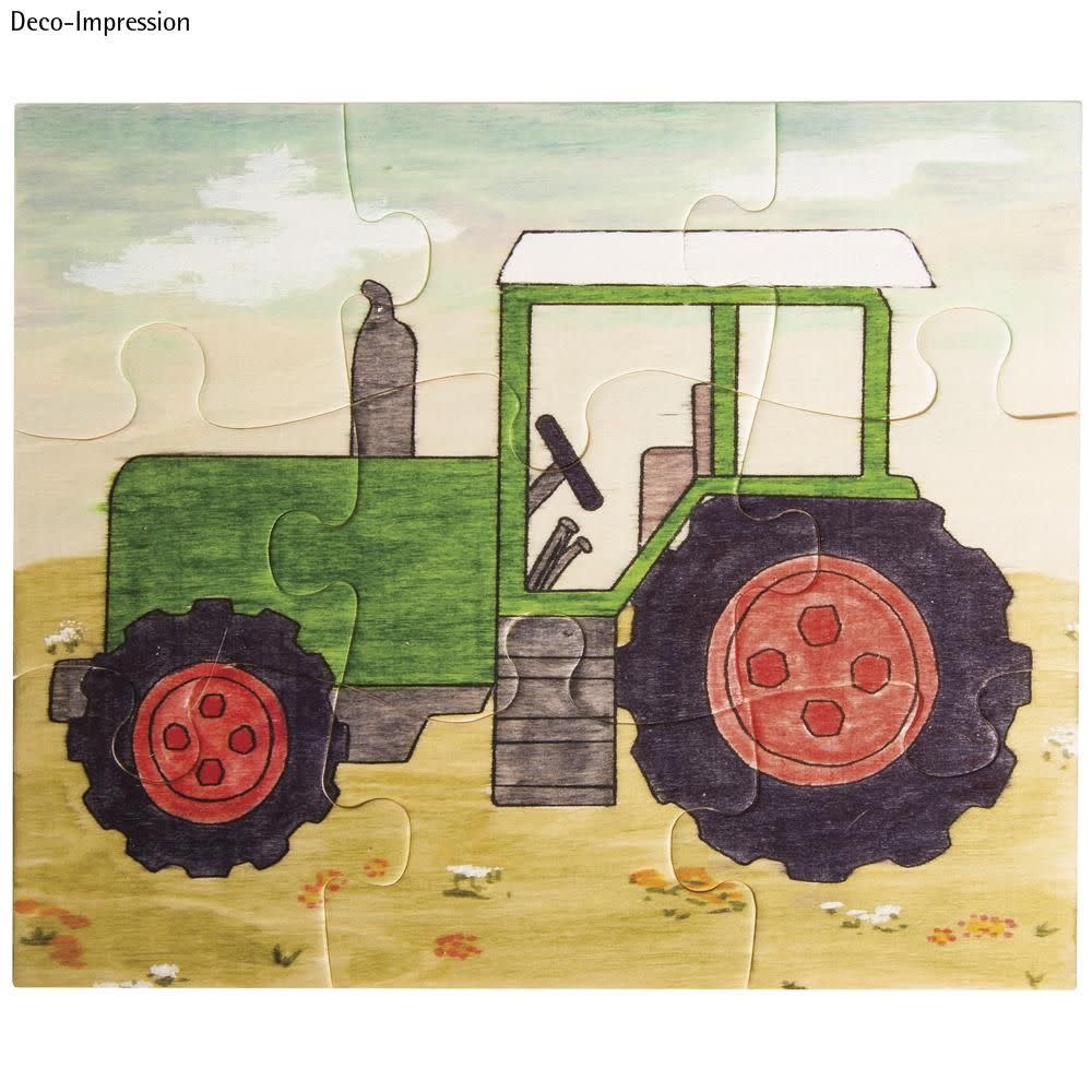Rayher - Houten puzzel Traktor, 17,6x14,7cm, om te kleuren