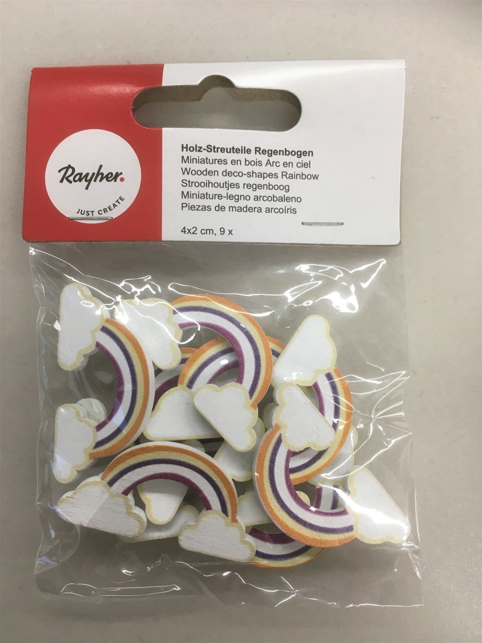 Rayher - Houten regenboog met wolkjes 4x2cm 9st.