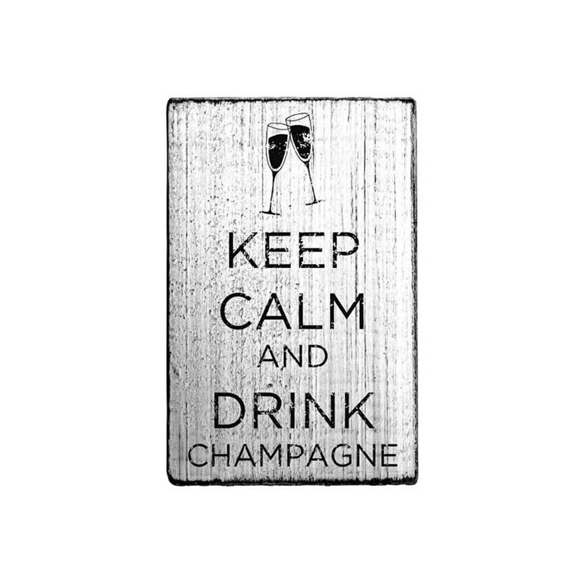 Houten stempel Vintage 70x42mm Blijf kalm en drink champagne