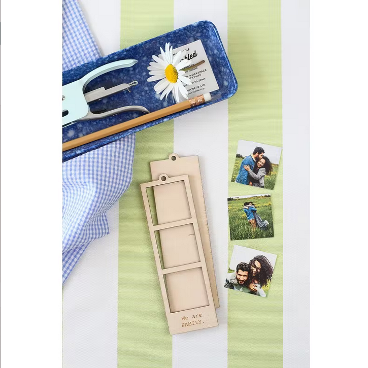 Steek een touwtje of een gekleurd lint door het oogje en hang je fotolijst aan de muur, aan een dennentak, aan de deuren van een koelkast. Je kunt het ook gebruiken als verfraaiing voor je scrapbook-creaties en als accessoire voor een familiefotoalbum door je ingelijste foto's erin te laten glijden.
