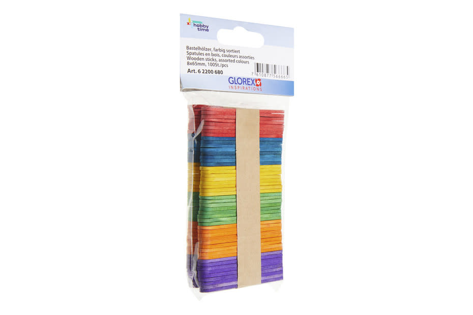 Knutselhoutjes Kleurrijk ass. 8x65mm 100st.