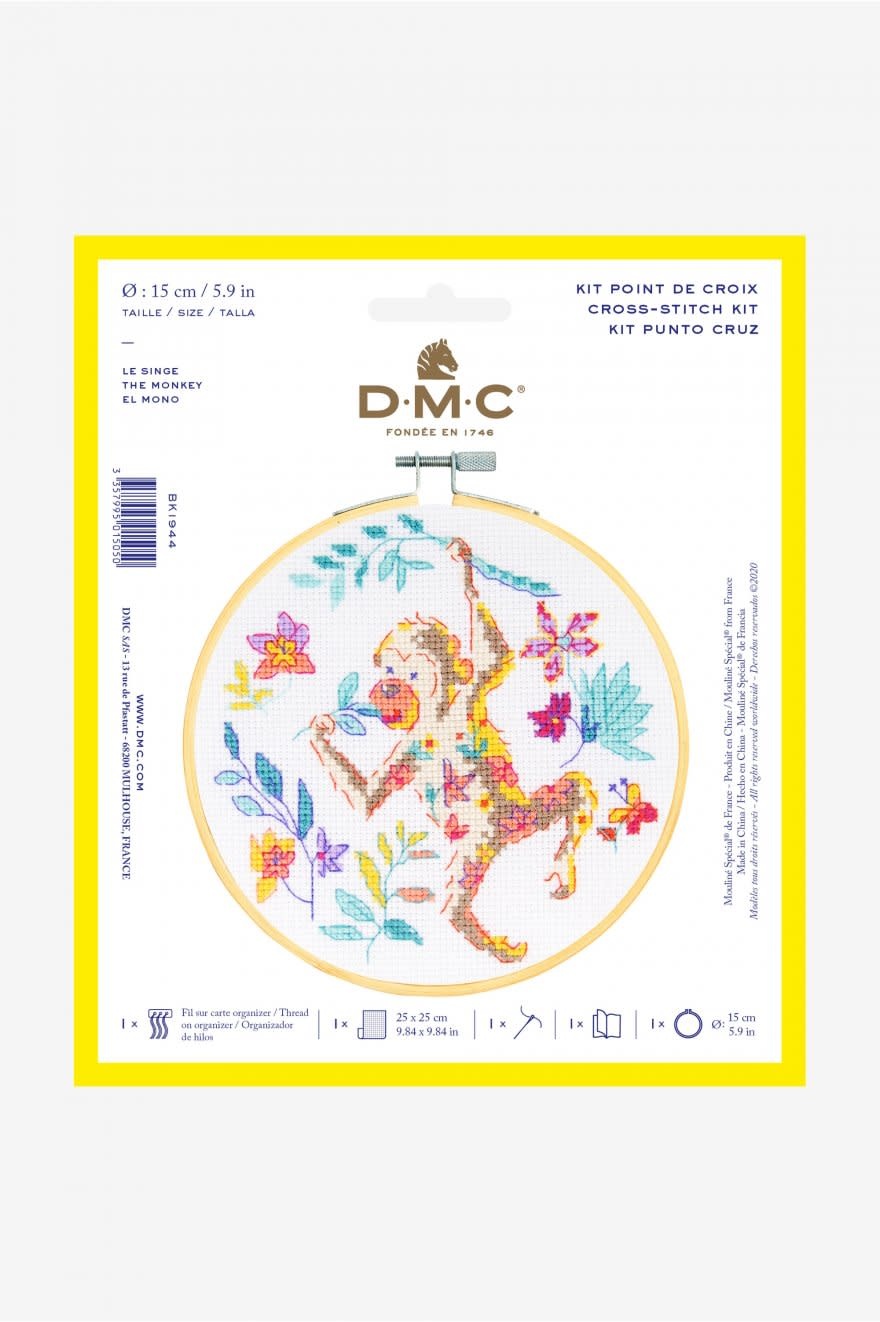 Kit Point de croix le Singe à réaliser sur de la toile Aïda 5.5pts/cm conçue spécialement dans le but d’obtenir de jolies croix nettes et régulières. Le kit est complet livré avec un tambour.