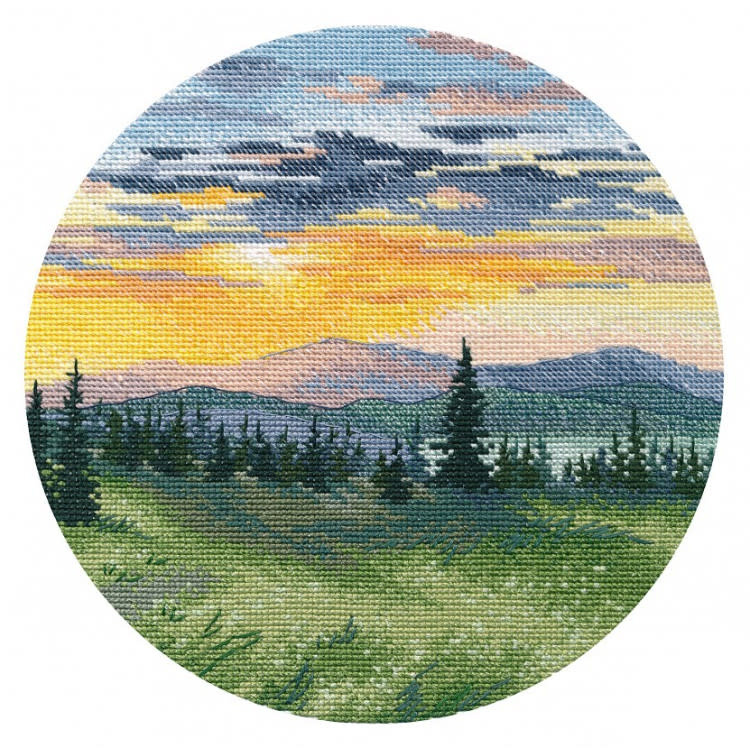 Kruissteekpakket SUNSET IN THE MOUNTAINS 20cm