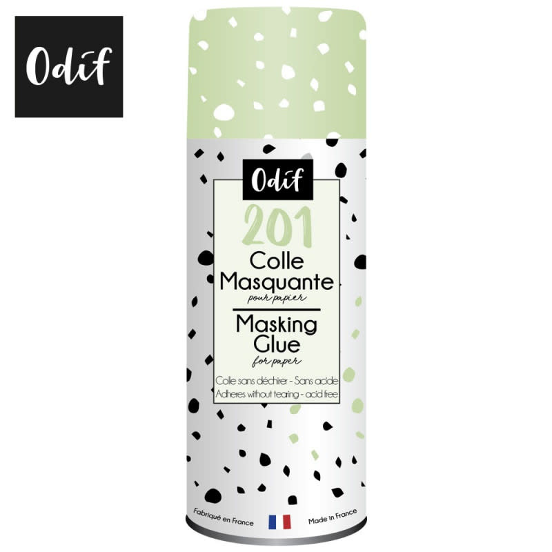 La colle masquante 201 permet de coller des motifs en papier sur un fond coloré ou foncé sans que le fond n'apparaisse par transparence.