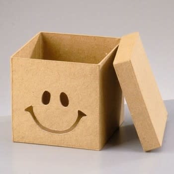 Papier mache doos Smiley 11x11x10,5cm