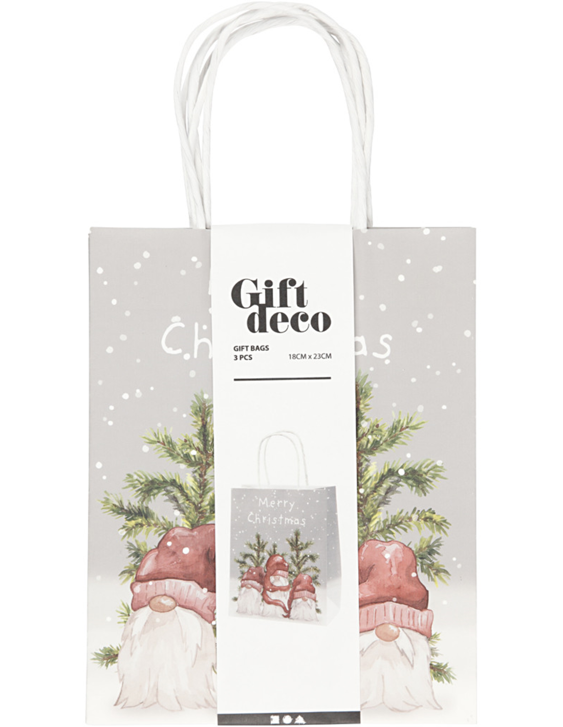 Papieren Zakken 18x9x23 cm Kerstkabouters 3 stuks