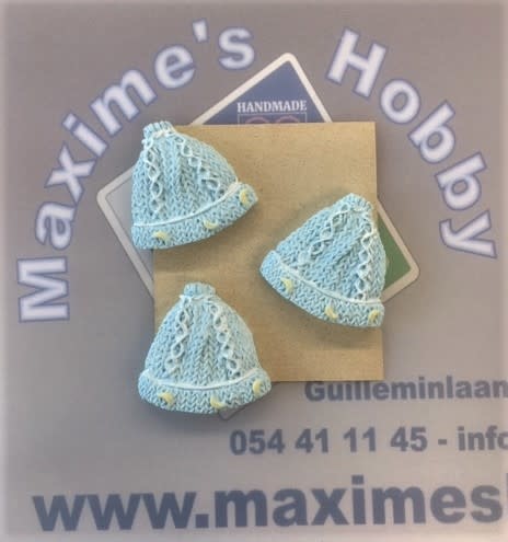 Polyresin muts Blauw 4cm 3st.