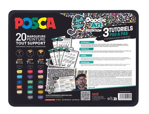 POSCA metalen opbergdoos 20 stiften met workshop Doodlen