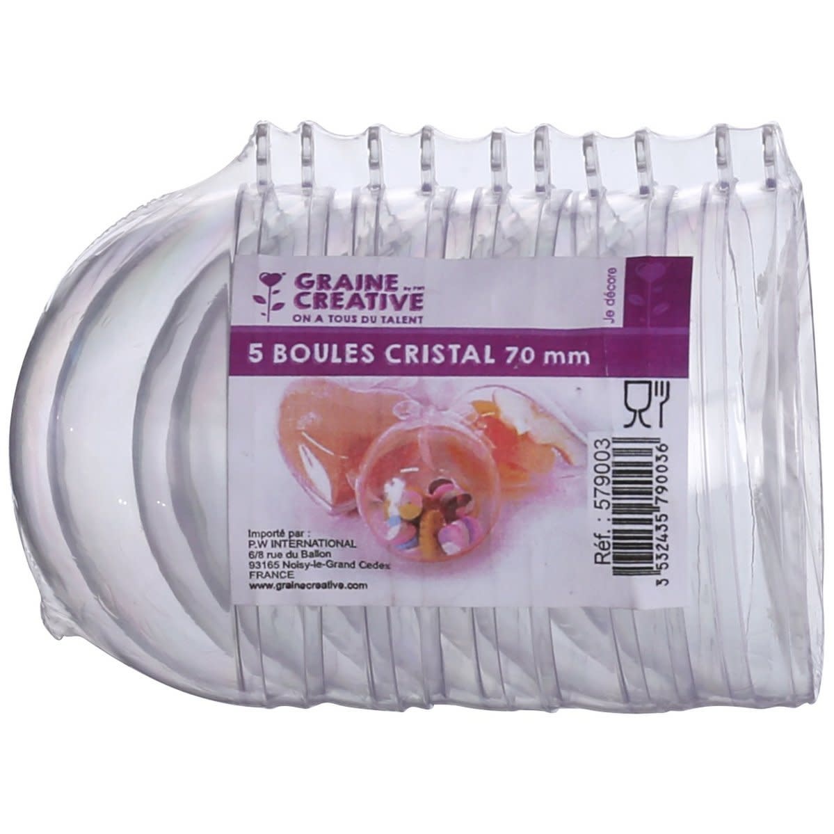 SET VAN 5 KRISTALLEN BALLEN VAN HELDERE KUNSTSTOF 70 mm - deelbaar