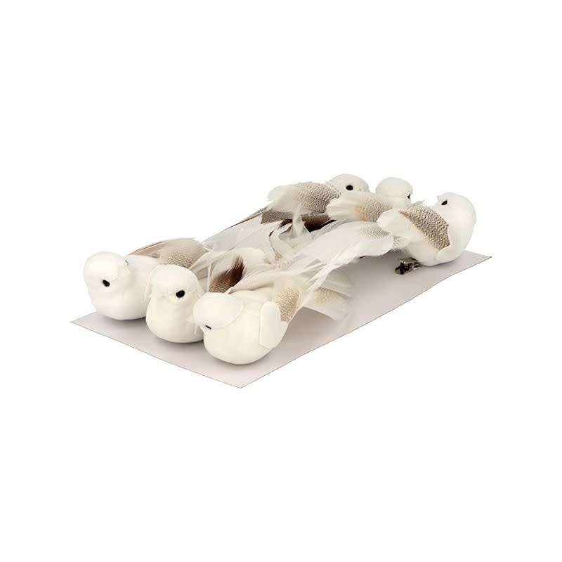 Set van 6 vogeltjes wit 15x3.5x3.5 cm