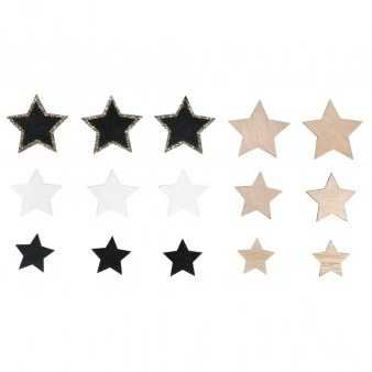 Strooihoutjes Ster, 3,2-5cm ø, gesorteerd, m. lijmdot, ZB-zak 15st., bont