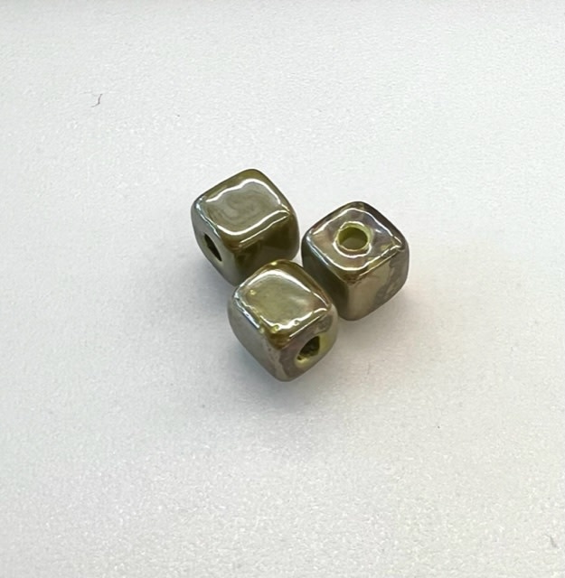 Vierkante parel geel - groen +/- 0,7x0,7mm