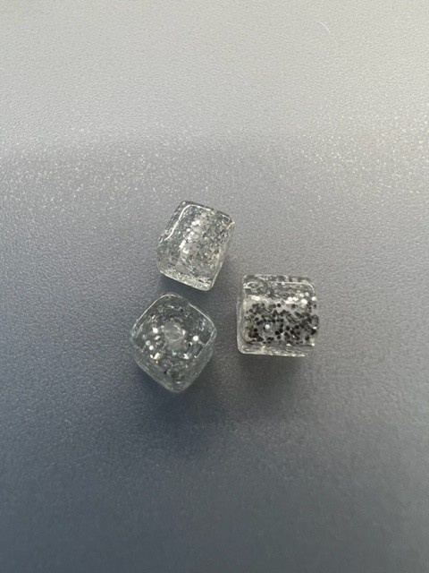 Vierkante transparante glitter parel 3st.