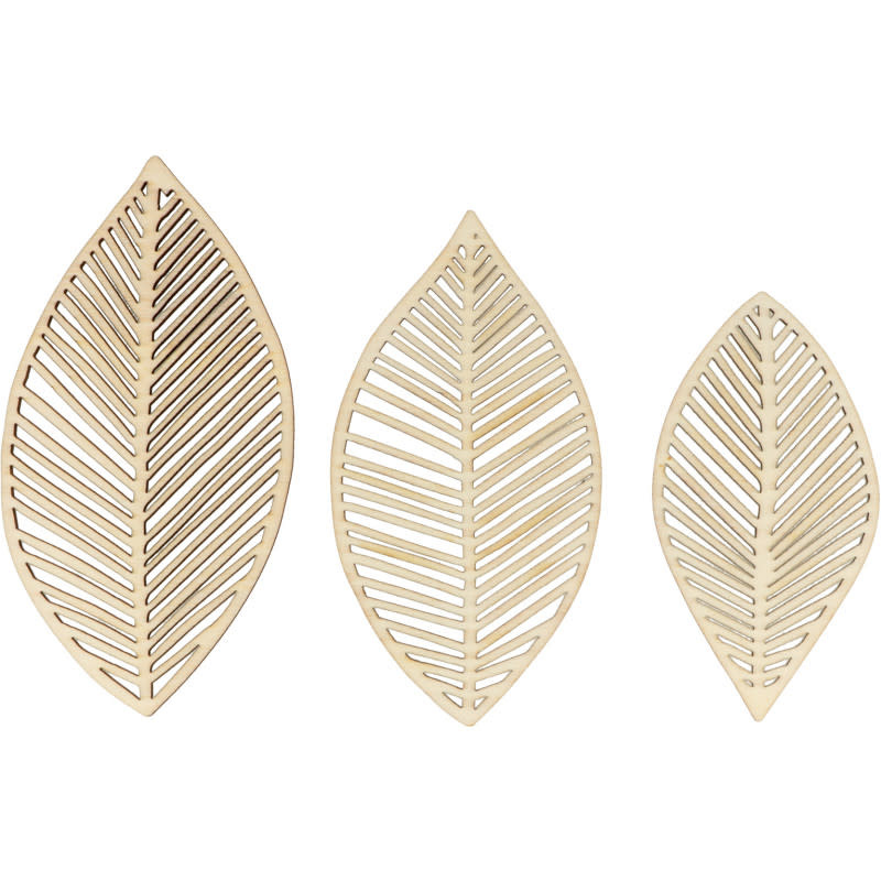 3 houten bladsilhouetten van circa 10-12-13 cm