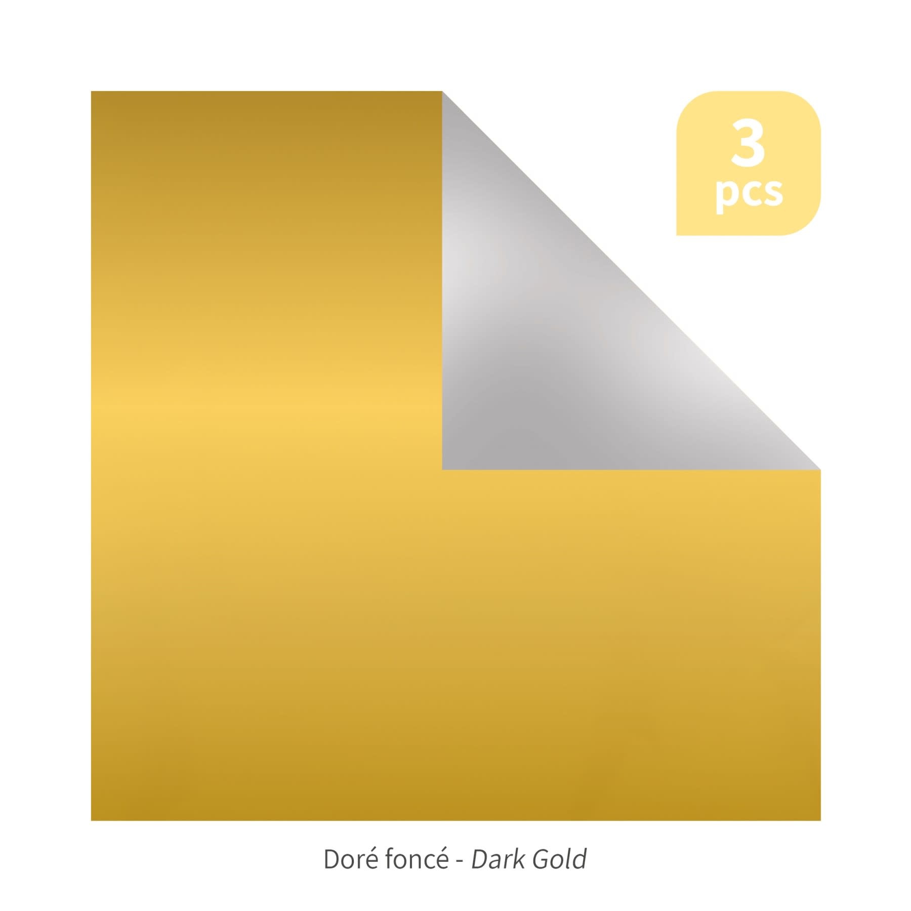 De set bevat 3 tweekleurige aluminiumfolie embossingvellen. Ze zijn 20 x 20 cm groot, goud- en zilverkleurig, hebben een gewicht van 250 g/m² en zijn 70 µ dik.