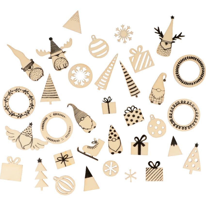 34 houten MINI SILHOUETTES Christmas 1,5-4cm