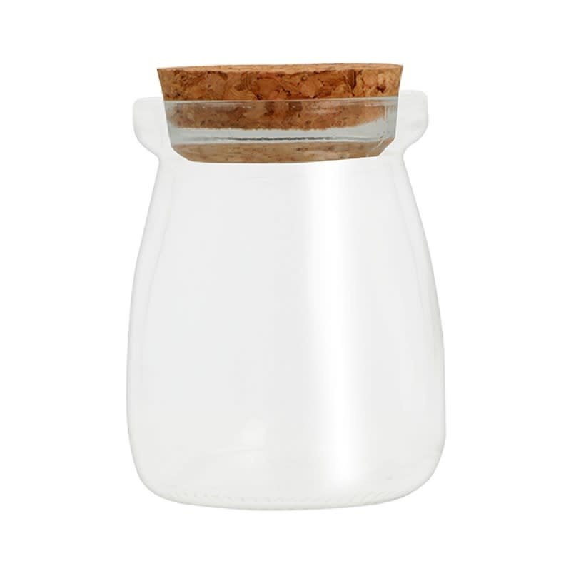 De set bevat 6 glazen potten. De glazen pot is 7,5 cm hoog, heeft een diameter van 5,5 cm en wordt geleverd met een kurken stop.