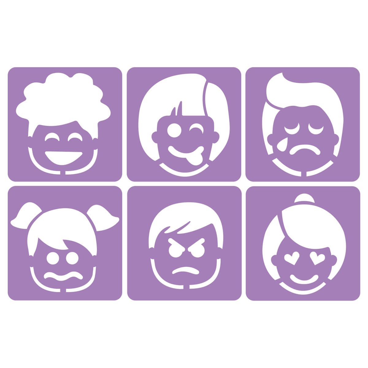 Via het thema 'emoties' kan het kind verhalen vertellen en boodschappen doorgeven. Hij zal dragers, versieringen of kaarten kunnen personaliseren met symbolische gezichten en uitdrukkingen. Te gebruiken met verf, stiften of kleurpotloden, deze stencils zijn zeer resistent en gemakkelijk afwasbaar.