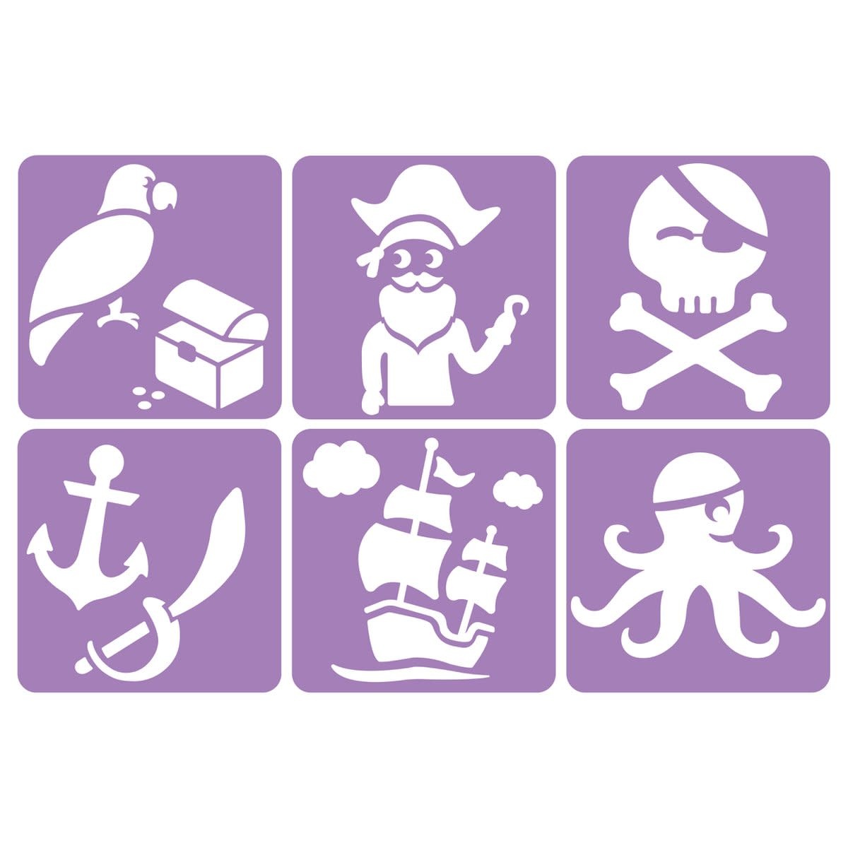 6 Piraten stencils in onbreekbaar plastic - 14 x 14 cm
