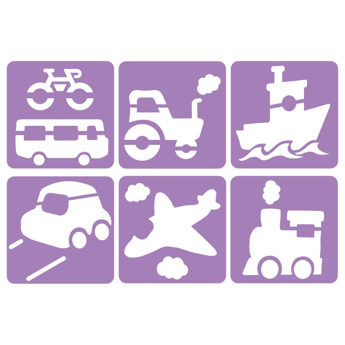 Door het thema "MIJN VERVOER" zal het kind zijn creaties tot leven brengen en ze tot leven brengen met alle elementen uit de transportwereld. Hij zal in staat zijn om steunen, decoraties of andere te personaliseren. Te gebruiken met verf, stiften of kleurpotloden, deze stencils zijn zeer resistent en gemakkelijk afwasbaar.