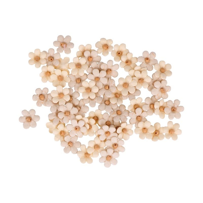 De bloemenset bevat 60 beige bloemen van gerecycled katoen. De bloemen hebben een diameter van 1,1 cm.