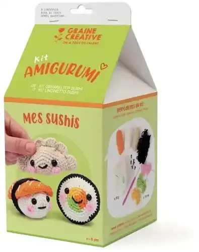 De Graine Creative GC Amigurumi Set Mijn Sushi is een compleet haakpakket waarmee je zelf schattige sushi-figuurtjes maakt volgens de amigurumi-techniek. Dit DIY-pakket bevat de benodigde materialen en duidelijke stap-voor-stap instructies, zodat je direct aan de slag kunt.
