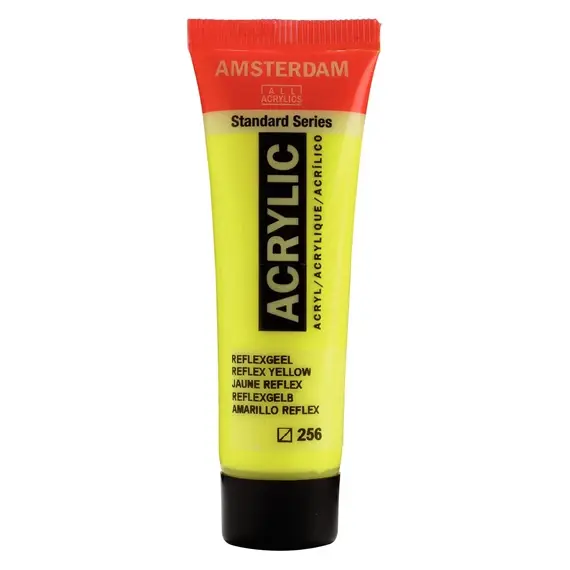 Amsterdam Standard Series acrylverf in Reflexgeel (256) is een semi-transparante verf zonder lichtechtheid (˚).