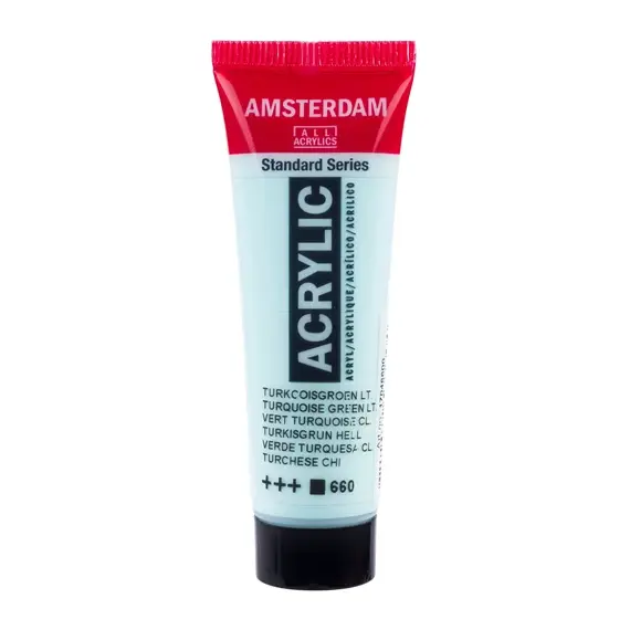 Amsterdam Standard Series acrylverf in Turkooisgroen Licht (660) is een dekkende verf met uitstekende lichtechtheid (+++).