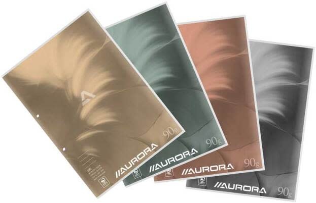 AURORA: CURSUSBLOK A4, GELIJND 8MM + BLAUWE MARGE, 2 GATEN, 100 VEL, 90G