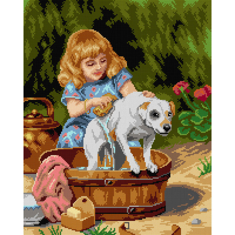 Bedrukt stramien " Meisje met hond " 40x50cm