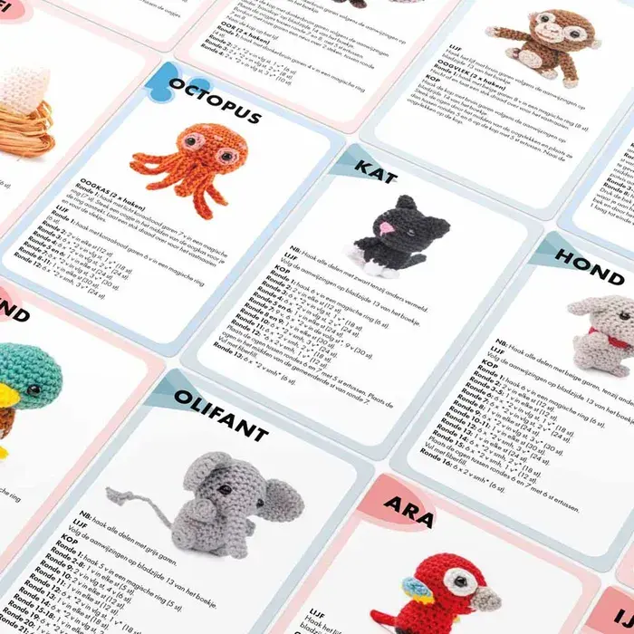 De diertjes zijn 6-9 cm groot en ideaal om je voorraad garenrestjes mee op te haken.
