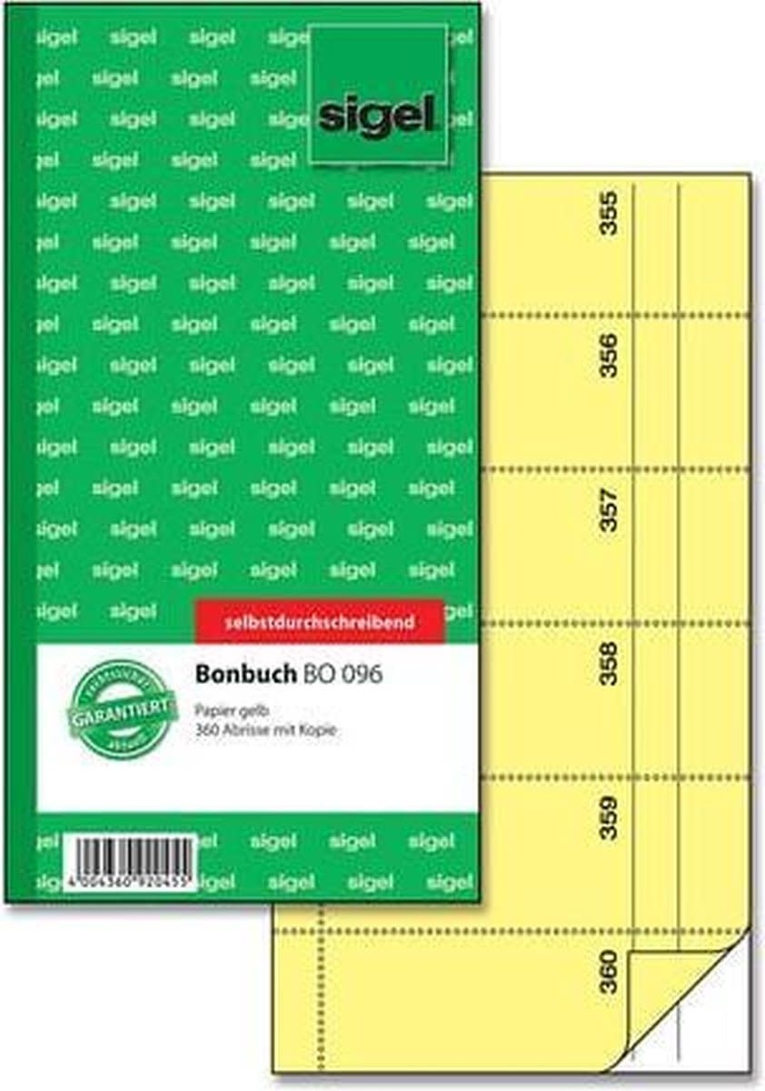 Bonboekje Sigel zelfdoorschrijvend 10,5x20cm 360 nrs geel