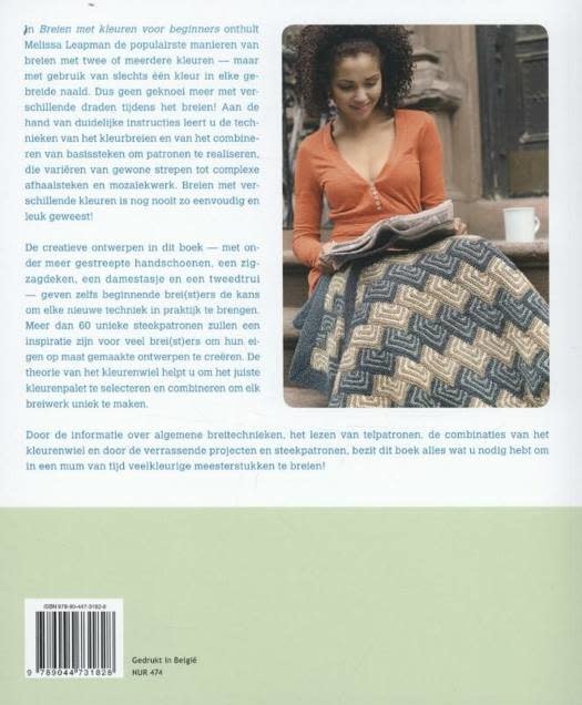 In Breien met kleuren voor beginners onthult Melissa Leapman de populairste manieren van breien met twee of meerdere kleuren - maar met gebruik van slechts één kleur in elke gebreide naald. Dus geen geknoei meer met verschillende draden tijdens het breien! Aan de hand van duidelijke instructies leert u de technieken van het kleurbreien en van het combineren van basissteken om patronen te realiseren, die variëren van gewone strepen tot complexe afhaalsteken en mozaïekwerk. Breien met verschillende kleuren is nog nooit zo eenvoudig en leuk geweest! De creatieve ontwerpen in dit boek - met onder meer gestreepte handschoenen, een zigzagdeken, een damestasje en een tweedtrui - geven zelfs beginnende brei(st)ers de kans om elke nieuwe techniek in praktijk te brengen. Meer dan 60 unieke steekpatronen zullen een inspiratie zijn voor veel brei(st)ers om hun eigen op maat gemaakte ontwerpen te creëren. De theorie van het kleurenwiel helpt u om het juiste kleurenpalet te selecteren en combineren om elk breiwerk uniek te maken. Door de informatie over algemene breitechnieken, het lezen van telpatronen, de combinaties van het kleurenwiel en door de verrassende projecten en steekpatronen, bezit dit boek alles wat u nodig hebt om in een mum van tijd veelkleurige meesterstukken te breien!