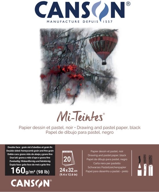 CANSON tekenpapier Mi-Teintes 24 x 32 cm zwart 160gr. 20 vel.