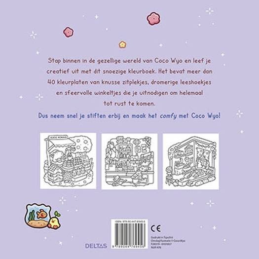 Stap dus snel binnen in de gezellige wereld van Coco Wyo en ontdek een heleboel ‘cozy’ hoekjes om in te kleuren! Knusse zitplekjes, dromerige leeshoekjes, sfeervolle winkeltjes… Leef je uit met de kleurplaten en geniet van een heerlijk ontspannen moment voor jezelf.