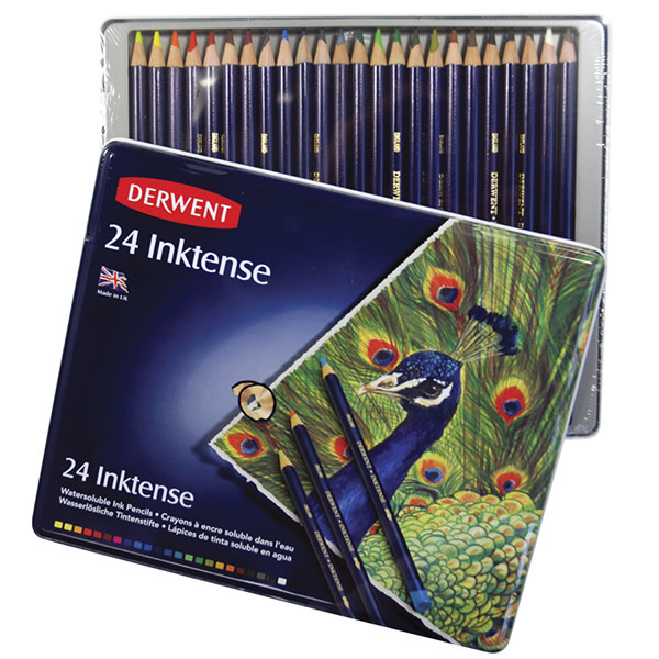 Derwent Inktense Pencils zijn Derwent’s beste aquarelpotlood ooit! Je kunt ze droog gebruiken maar meng ze met water en WOW! de kleur verandert in levendige inkt. Als het droog is, is de kleur hersteld en kun je eroverheen werken,